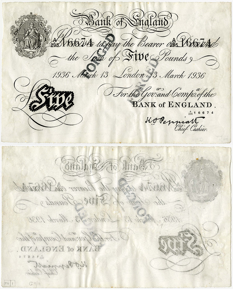 | Pacomartin Member since: Oct 24, 2012 Threads: 1068 Posts: 12569 | ![]() A copy of one of the WWII forged banknotes by Jewish calligraphers imprisoned by the Nazis. Nearly 10% of the circulation of the UK was forged causing the Bank of England to issue £1 banknotes with a security thread. Britain had no choice except to recall all notes worth more than £5. Even today, the £50 banknote circulates in relatively small quantities and the £100 banknote is only issued by a bank in Scotland. South Korea issued 5,000 and 10,000 won banknotes in 1972 and 1973. When the 10,000-won was first issued it was worth roughly US$25. Currency collapse meant that the 10,000-won note was worth a low of US$5.09 in December 1997, and today it is worth US$9.28. Fear of counterfeiting made the government reluctant to issue a higher value note. Finally on June 23, 2009 after 36 years, the Bank of Korea released the 50,000-won note. While it is generally believed that electronic transfers make petty counterfeiting much more difficult, it remains to be seen if a large scale hack of unprecedented proportions can be pulled off with e-money. |