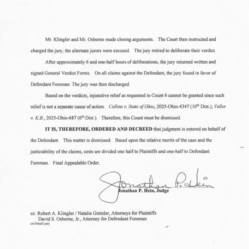 He came out of retirement to preside over this case Knew everybody in the sherriffs dept Generally court costs are paid by the loser There are exceptions This is one of them |