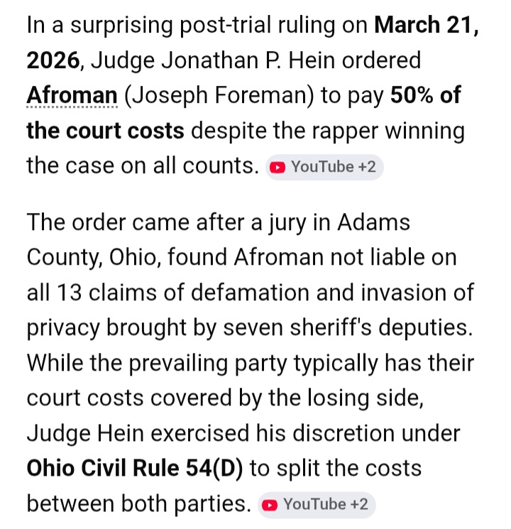| terapined1 Member since: Nov 26, 2024 Threads: 2 Posts: 700 | Listening to a juror being interviewed They were shocked that the sheriffs were able to get a search warrant on the flimziest of evidence A person arrested for drugs was willing to tell the Sheriff's anything What a whopper of a story She said Afroman had a basement dungeon with milutiple prisoners doing their business in a bucket WTF. The sherriffs bought it even though the informant kept changing their story Afroman has no basement Jurors were shocked that a sherriff can search somebody's home due to an obvious outrageous lie A basement dungeon with prisoners!!!!!!!!!!!!!!!!!!!!!!! Nobody in the area missing. No local kidnappings reported Yet the Sheriff's bought it lock stock and barrel. Juror said that was the most shocking part of the case |