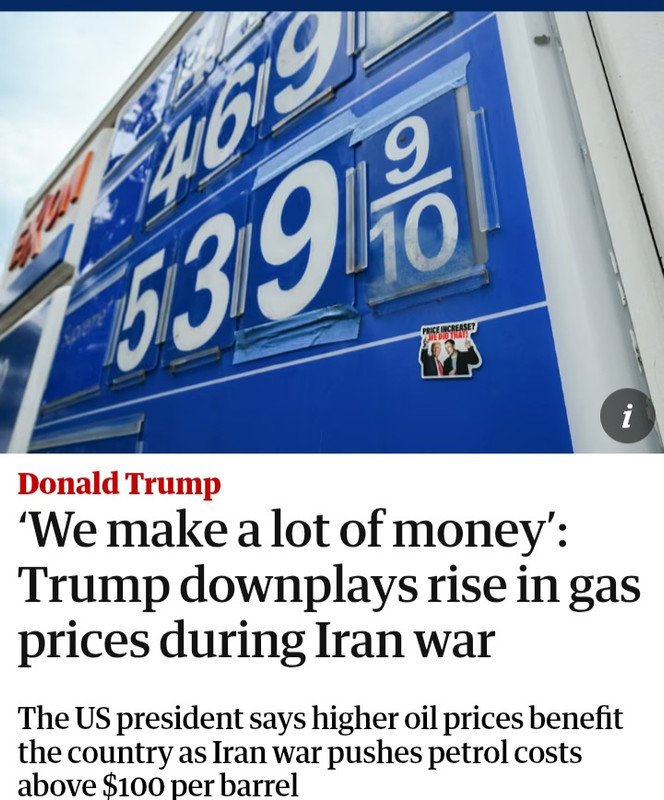 | OnceDear Member since: Nov 21, 2017 Threads: 15 Posts: 1788 | That's a rather dodgy/lazy/shoddy source that you quoted: "Pushing PETROL costs over $100 a barrel" If they can't tell that petrol and oil are not the same thing and that PETROL costs have been $100 a gallon for years, you should maybe seek more careful sources. And I do agree with your stance, just not the way you are posing it. |