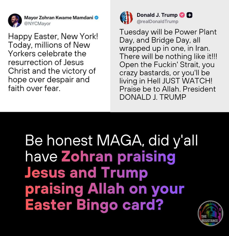 Zohran doesn't surprise me, he is classy and a politician who knows how to play to his base. Trump, honestly does surprise me. I expect him to post garbage. I did not expect him to post an Islamic prayer. So 50/50 I guess |