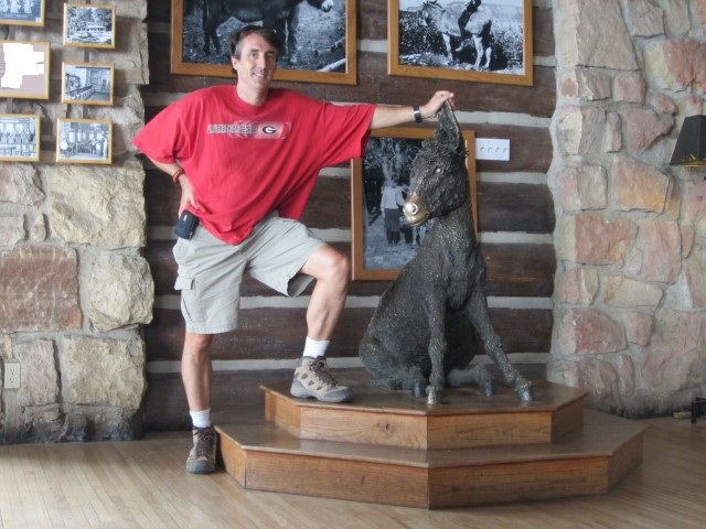 Yes, that is a photo of the answer. For those who don't recognize it... I'm with a statue of Brighty of the Grand Canyon, found in the Grand Canyon Lodge on the north rim of the canyon. I welcome anyone else to post another "where am I" picture. Knowledge is Good -- Emil Faber |