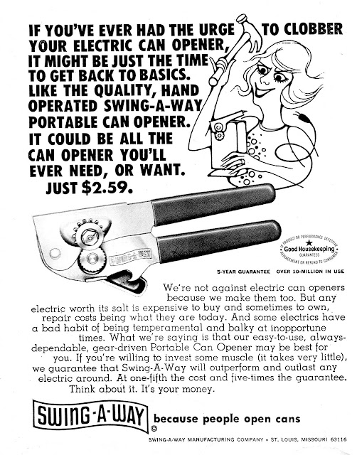 It's sad. Made in America used to be a selling point that people supported. Nowadays, everything seems to be marked "made in China", even Craftsman tools. I guess folks are happier not having to pay triple. I do miss my made in the U.S.A. "Swing-a-way" can opener. That thing was solid and reliable. They sold out to a Chinese manufacturer, so now they are just a piece of junk. ![]() Ad from 1974: |