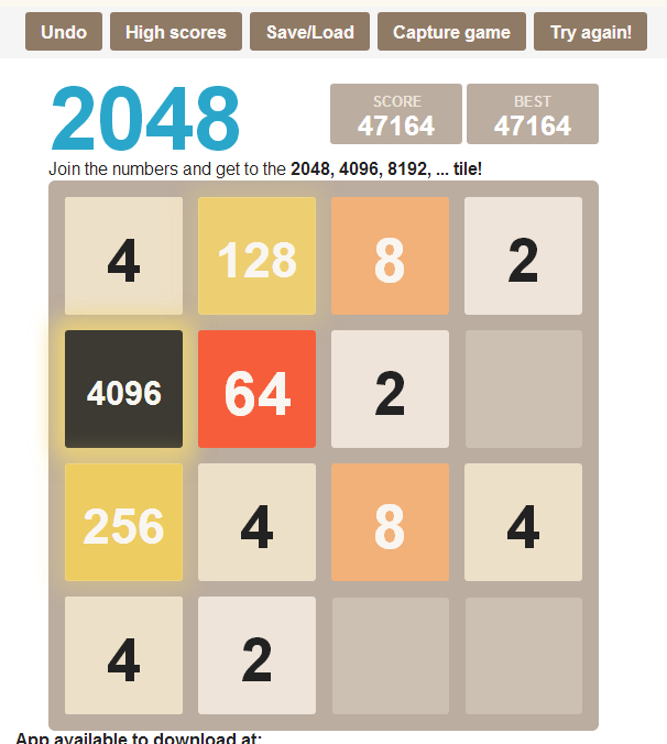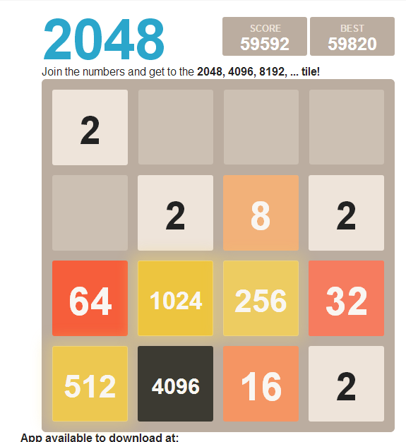 I run the biggest tile into the bottom right corner. Using right/down in alaternative succession quickly automatically gets stuff filled in. When this stops, I slide up, but keep the biggest tile still in the bottom right where ever possible. if it moves and a 2 sneaks in behind, your gonna have a rough time. Eventually, the biggest are in the bottom right slots, but the top right grows as well and the middle may have smaller tiles I am storing to pack together. It is said that your life flashes before your eyes just before you die.... it's called Life |